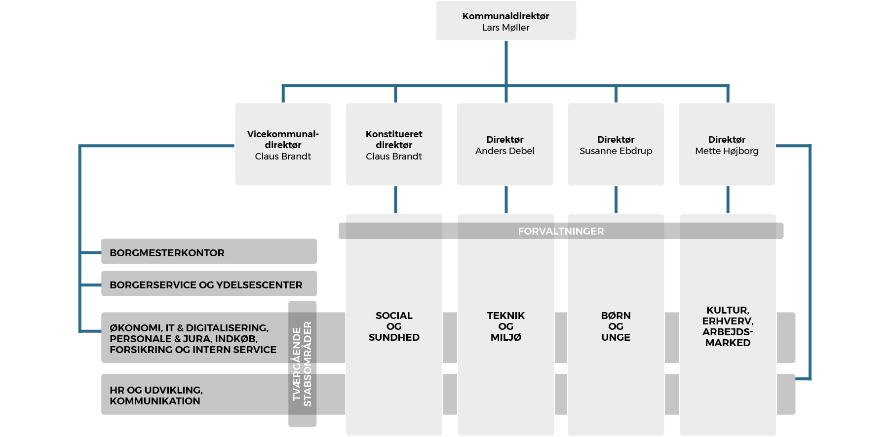 Du er her: Forside Om Kommunen Organisationen Organisationsplan Organisationsplan Den overordnede organisering i Holstebro Kommune Staben Social og Sundhed Teknik og Miljø Børn og Unge Kultur, Erhverv og Arbejdsmarked