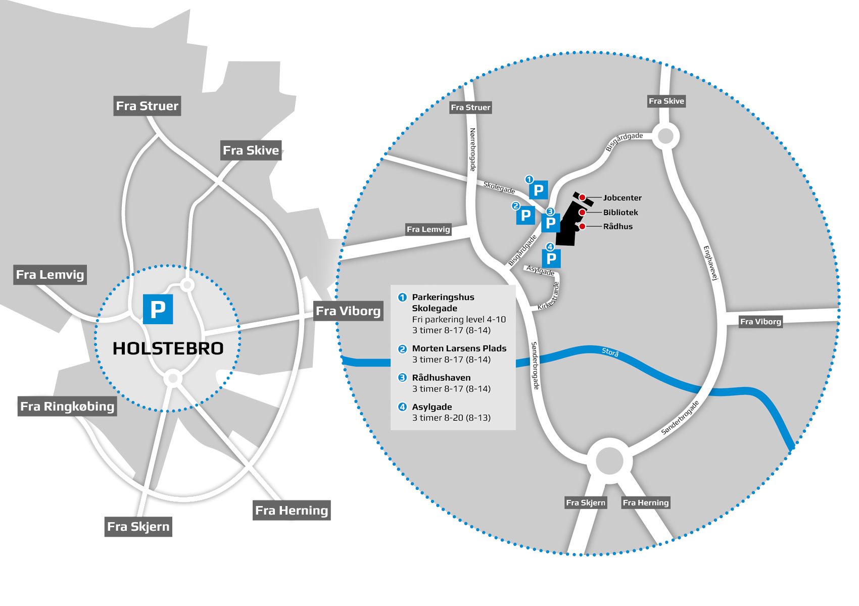 Her kan du parkere, hvis du skal besøge rådhuset, borgerservice, biblioteket, jobcentret eller turistbureauet i Holstebro.